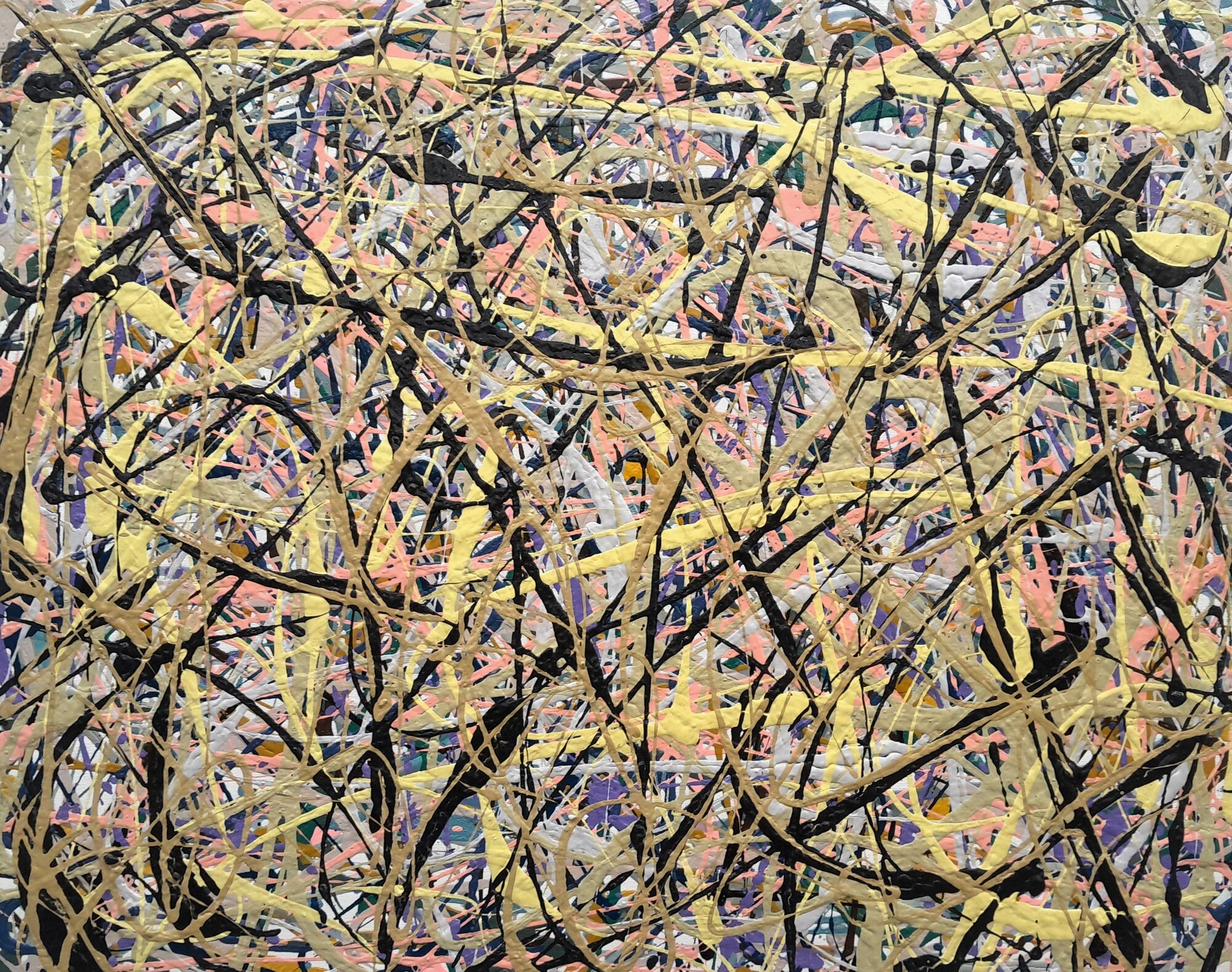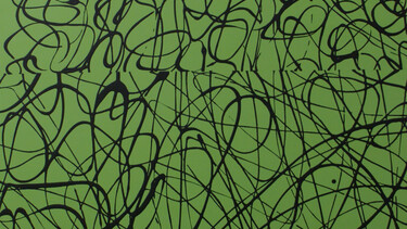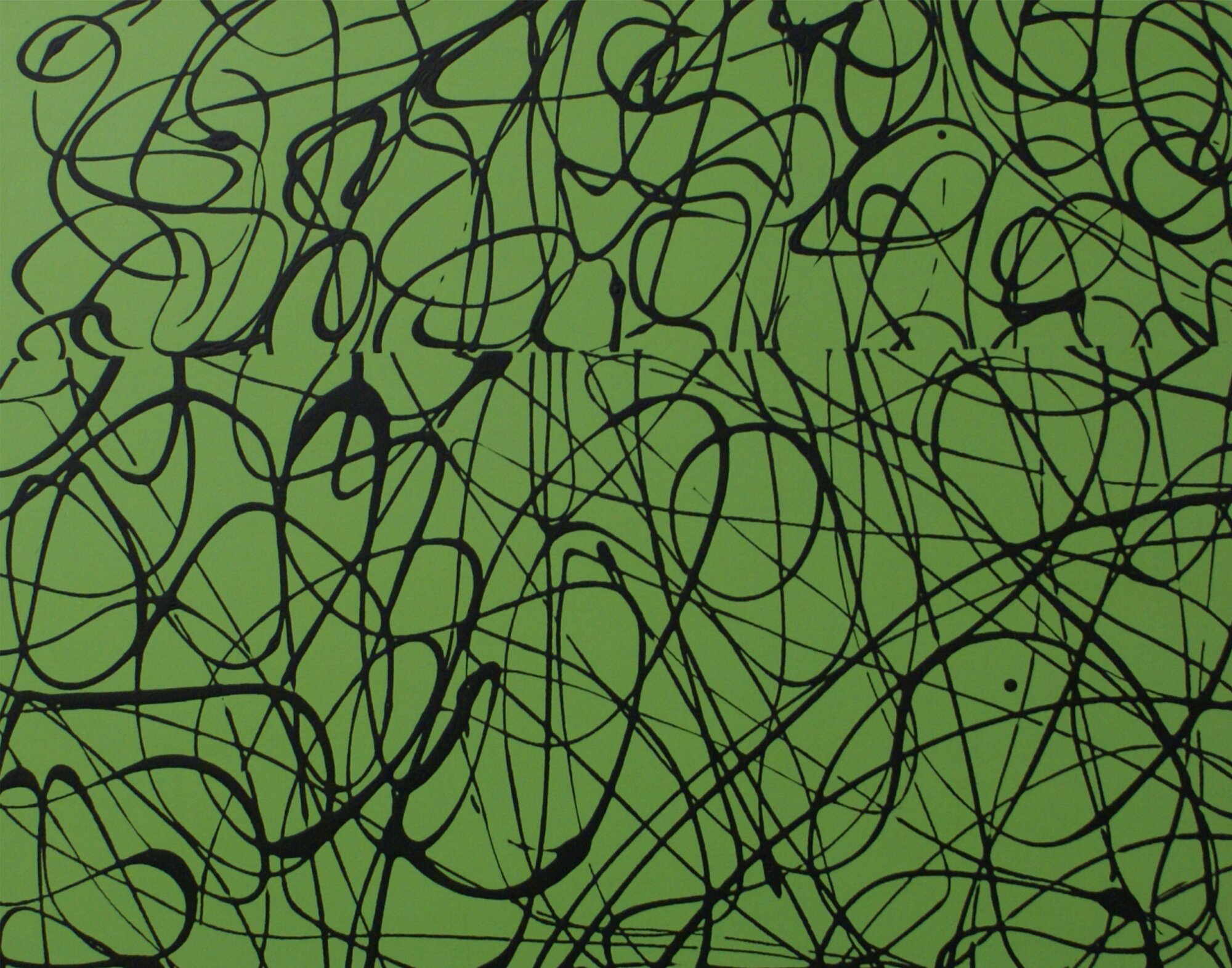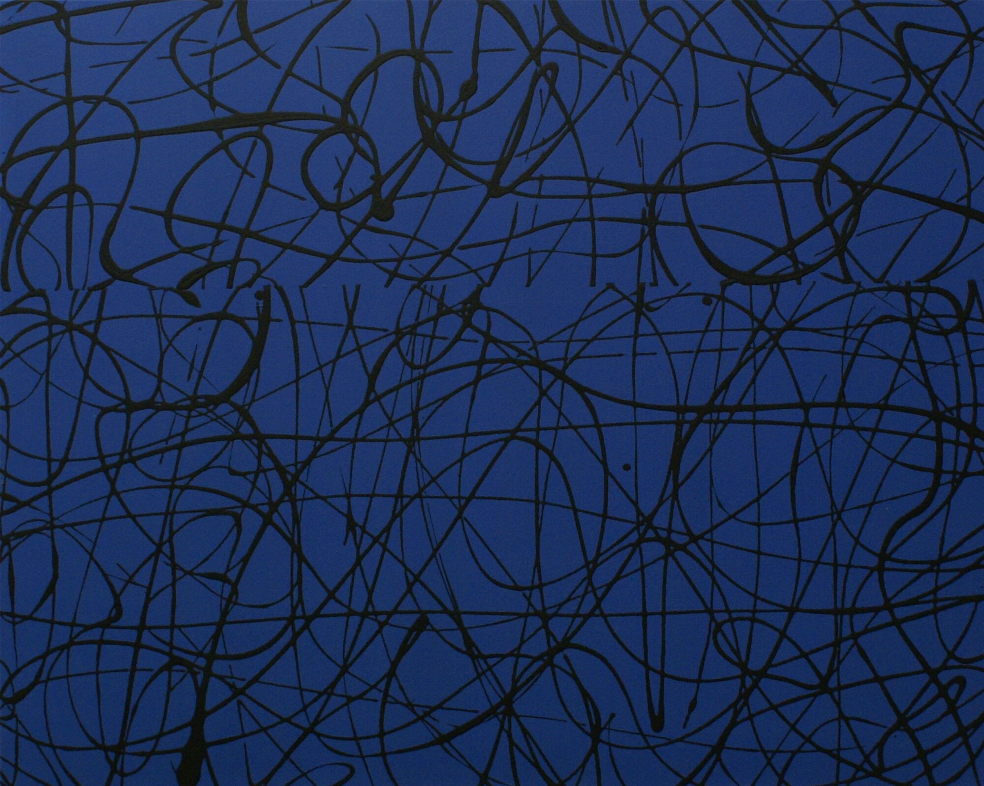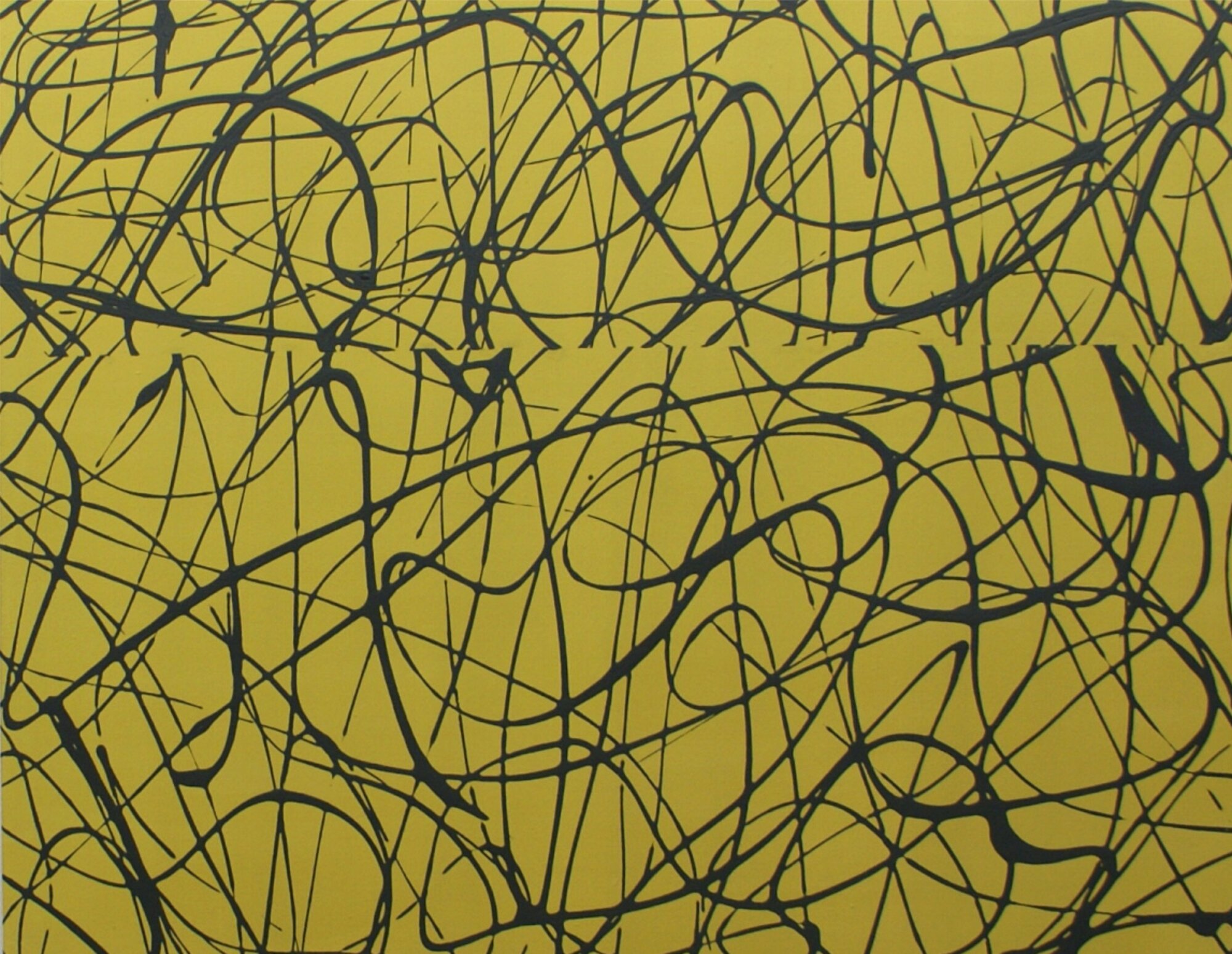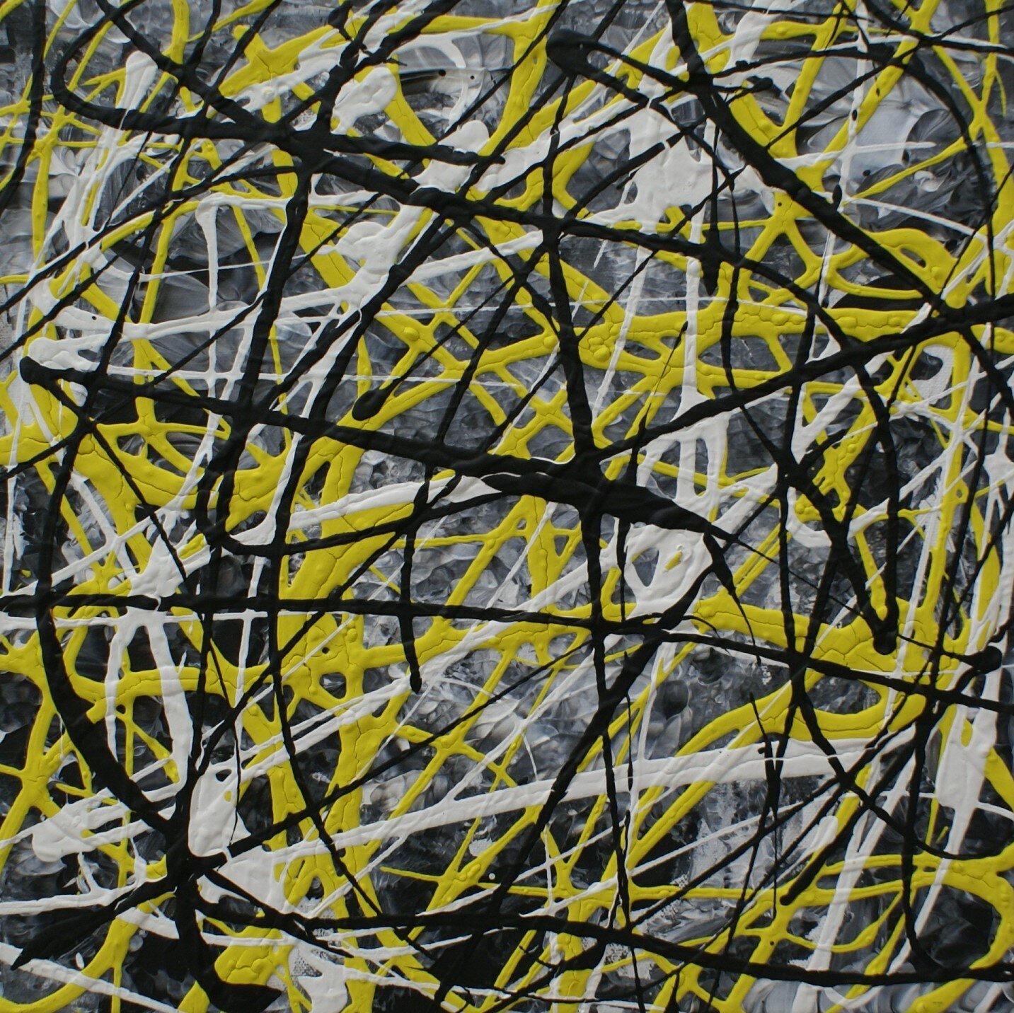 Beim Giessen der Farbe auf einen Malgrund folgt die Farbe den Bewegungen. Das Bild wird zum Seismographen meiner Bewegung. Es entsteht ein Rhythmus, eine Spur, eine Aufzeichnung. Meine Aufmerksamkeit ist auf die Aktion gerichtet. Die bildliche Form präsentiert Spuren vergangener Aktionen.