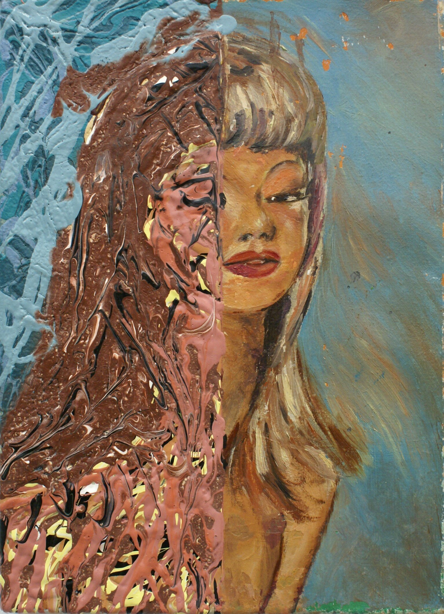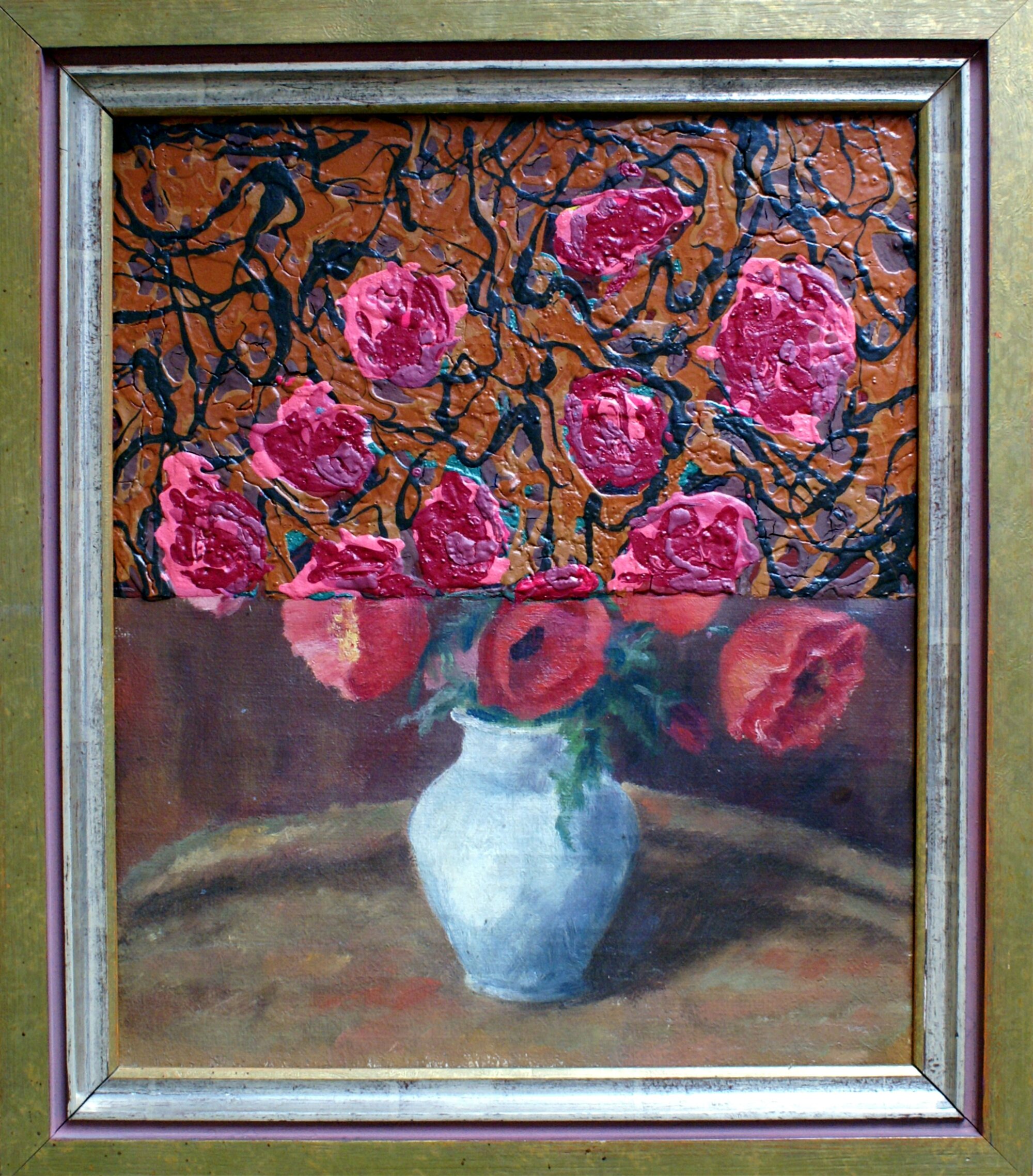 Häller übermalt eine Bildhälfte des bestehenden Bildes (Stillleben, Portraits, Landschaftsbilder) mit seinem persönlichen Duktus. (lat. ductus: Charakter der Pinselstrichführung)